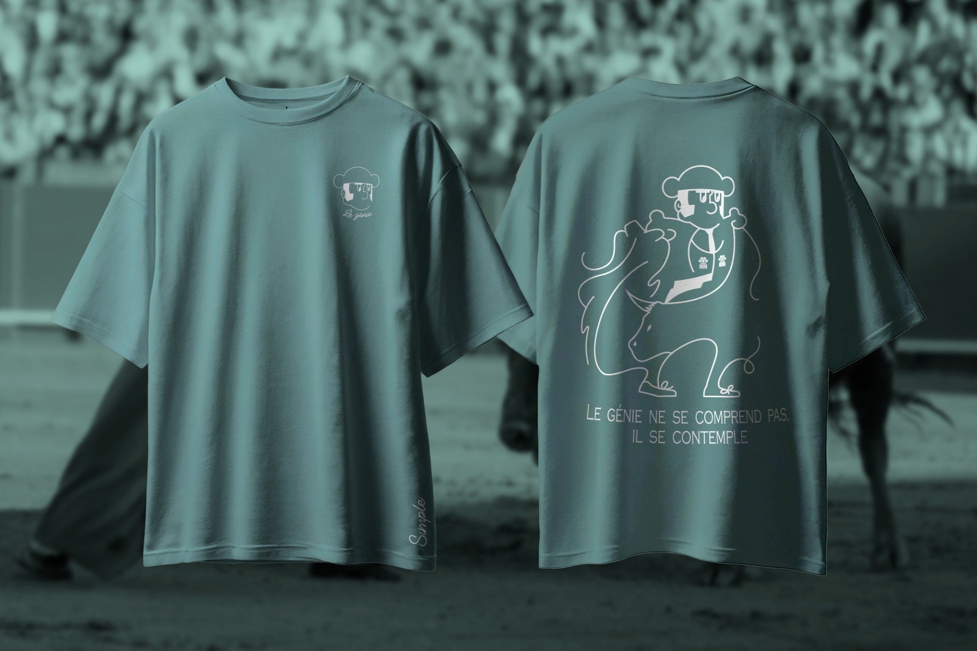 Esta camiseta nace del embrujo que dejó Morante de la Puebla el 1 de mayo en la Real Maestranza de Caballería de Sevilla. Inspirada en la larga —ese lance tan sencillo y tan difícil— que ejecutó con el capote como quien pinta un suspiro en el aire.